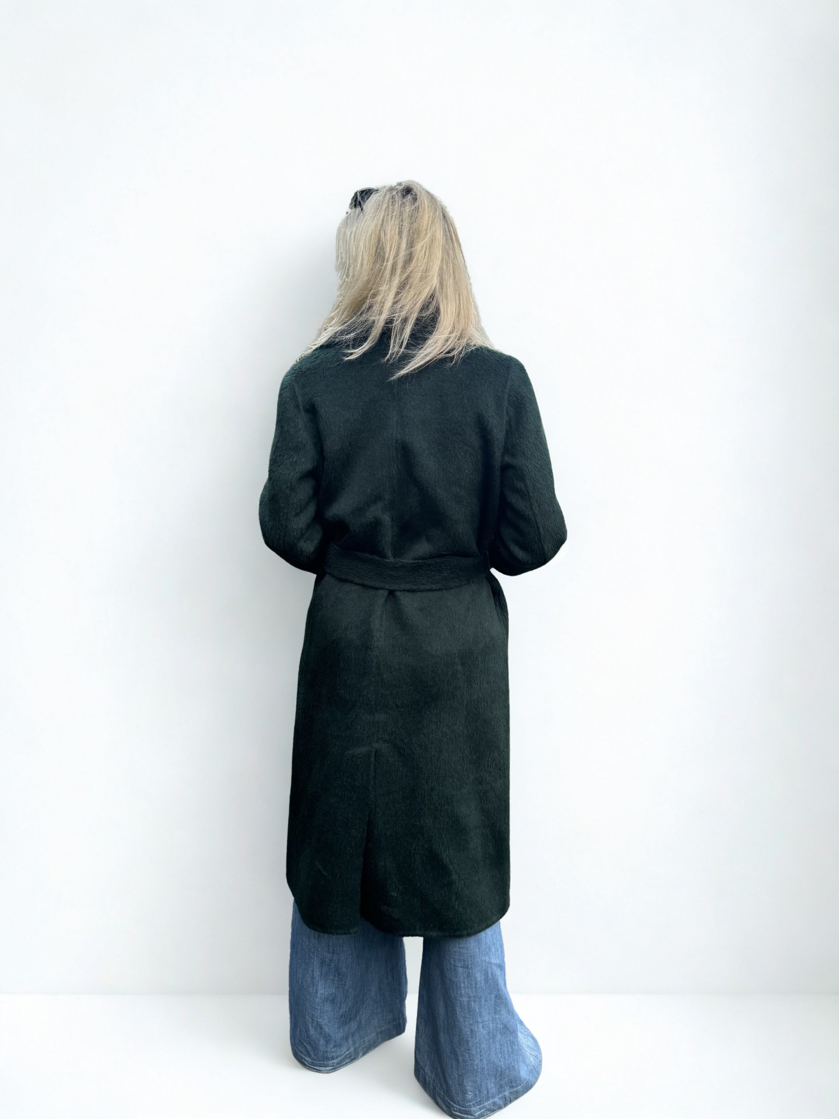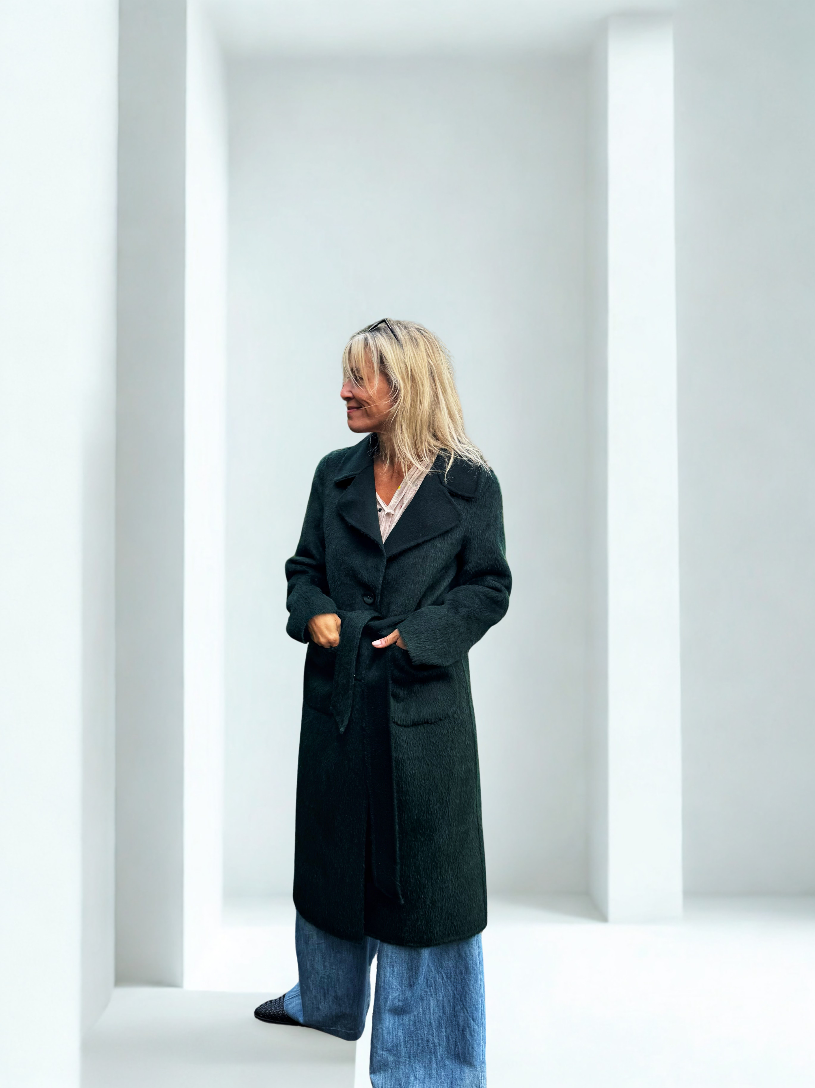 Die Wolle der süßen Alpakas ist noch nicht so bekannt wie Kaschmir, dabei aber mindestens genauso weich und wärmend und atmungsaktiv. Da sie kein Lanolin enthält, ist sie auch besonders gut geeignet für Menschen, die auf Schafswolle empfindlich reagieren. Womit wir nun endlich zu diesem wunderbaren Alpaka-Mantel im Trenchcoat-Schnitt kommen. Er ist wie gemacht für den deutschen Winter: Geräumig mit zwei Taschen, dazu gibt es auch einen handfesten Gürtel, der die Taille akzentuiert. Auf jeden Fall ein Teil für viele Jahre. Momentan in Gr. 38/40 vorhanden, aber wir fertigen gerne noch einen auf Maß.