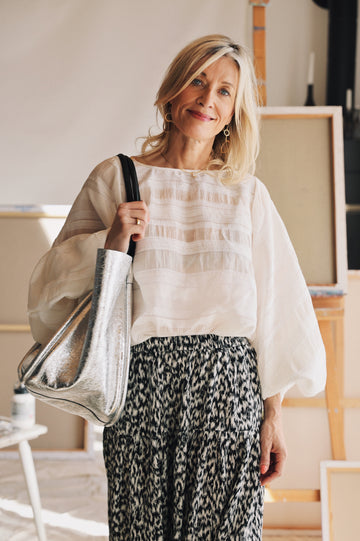 Unsere Bestseller-Bluse des Jahres - aus einer zarten Seiden-Baumwollmischung. Leider momentan nur noch einmal in Größe 38 vorhanden, aber wer den Stil möchte, wendet sich vertrauensvoll an uns. In ähnlichen Stoffen oder auch Unifarben kann sie jederzeit in Eurer Wunschgröße angefertigt werden.
