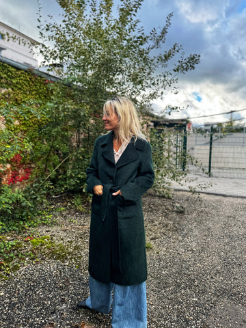Die Wolle der süßen Alpakas ist noch nicht so bekannt wie Kaschmir, dabei aber mindestens genauso weich und wärmend und atmungsaktiv. Da sie kein Lanolin enthält, ist sie auch besonders gut geeignet für Menschen, die auf Schafswolle empfindlich reagieren. Womit wir nun endlich zu diesem wunderbaren Alpaka-Mantel im Trenchcoat-Schnitt kommen. Er ist wie gemacht für den deutschen Winter: Geräumig mit zwei Taschen, dazu gibt es auch einen handfesten Gürtel, der die Taille akzentuiert. Auf jeden Fall ein Teil für viele Jahre. Momentan in Gr. 38/40 vorhanden, aber wir fertigen gerne noch einen auf Maß.
